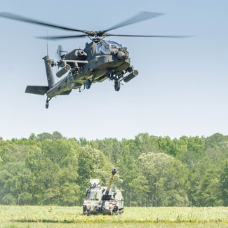The Coup d'état for this Airshow was the Joint NG Combined Arms Demo ... There were F-16 Fighting Falcons, AH-64 Apaches, UH-60 Blackhawk, M109 Howitzer, M1A1 Abrams Tanks, and M2 Bradley Fighting Vehicles. The scenario was making attacks on a hostile position with the F-16s and AH-64s, followed by the recovery of a "downed" pilot by the UH-60 with support provided by the ground forces. For the F-16 passes to simulate the release of ordinance the aircraft release flares with pyrotechnic explosions on the ground. During the ground support portion of the demo the armored vehicles and troops were firing blanks. The demo ended with a Wall of Fire as the F-16s did a final overhead pass of the crowd.